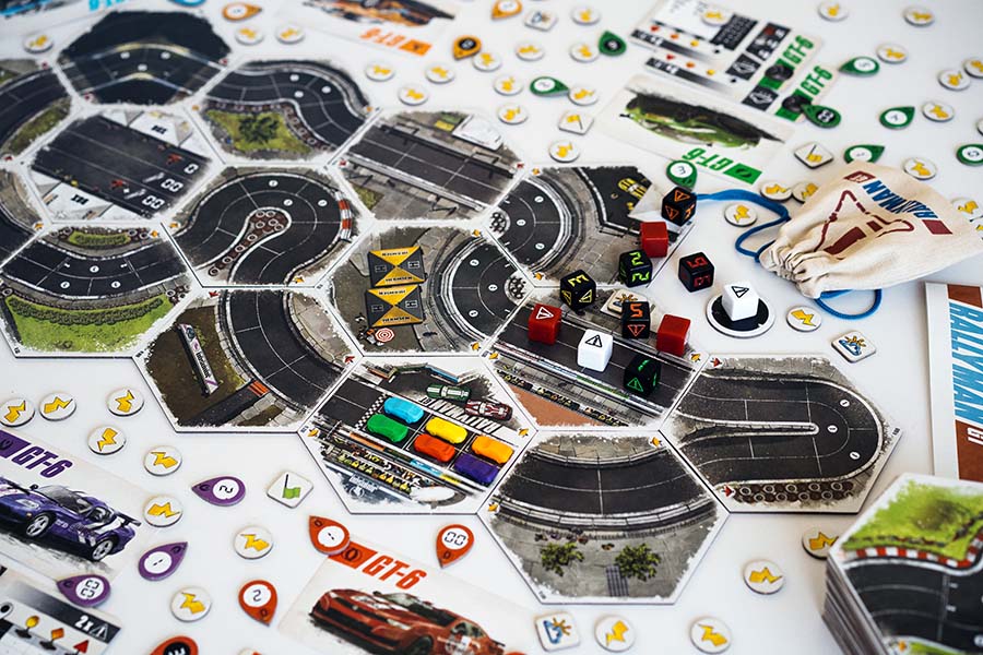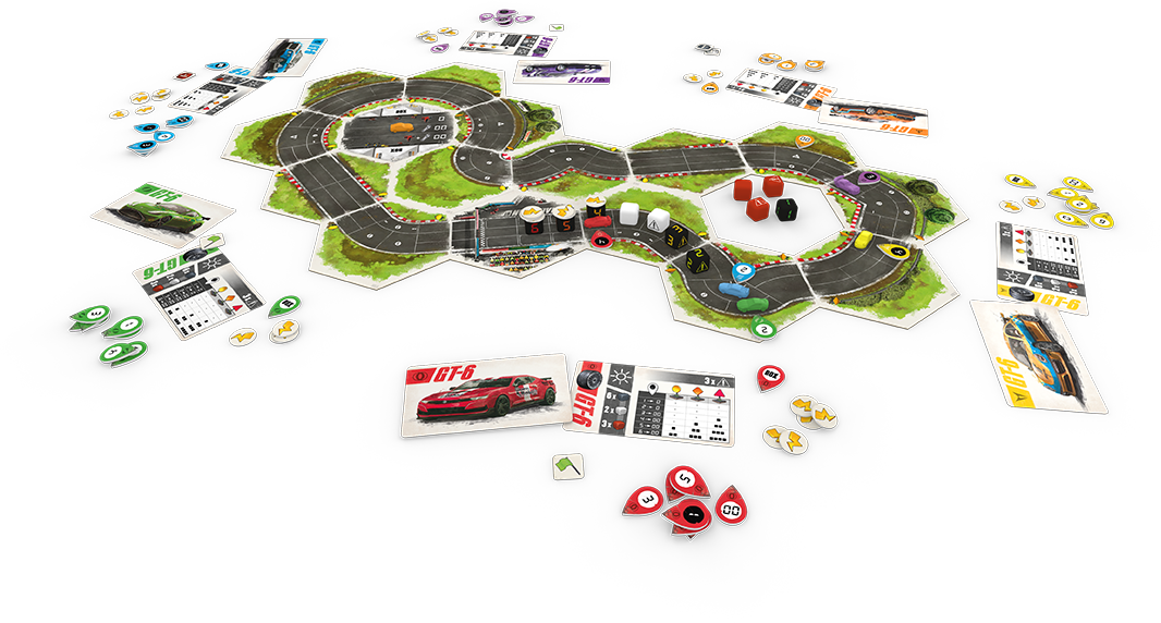 Rallyman: GT is a Roll and Move racing game for 1-6 players. This GT version of the classic rally game by Jean-Christophe Bouvier will have you rolling dice and pushing your luck to be the first over the finish line!Your Content Goes Here
