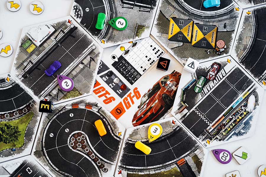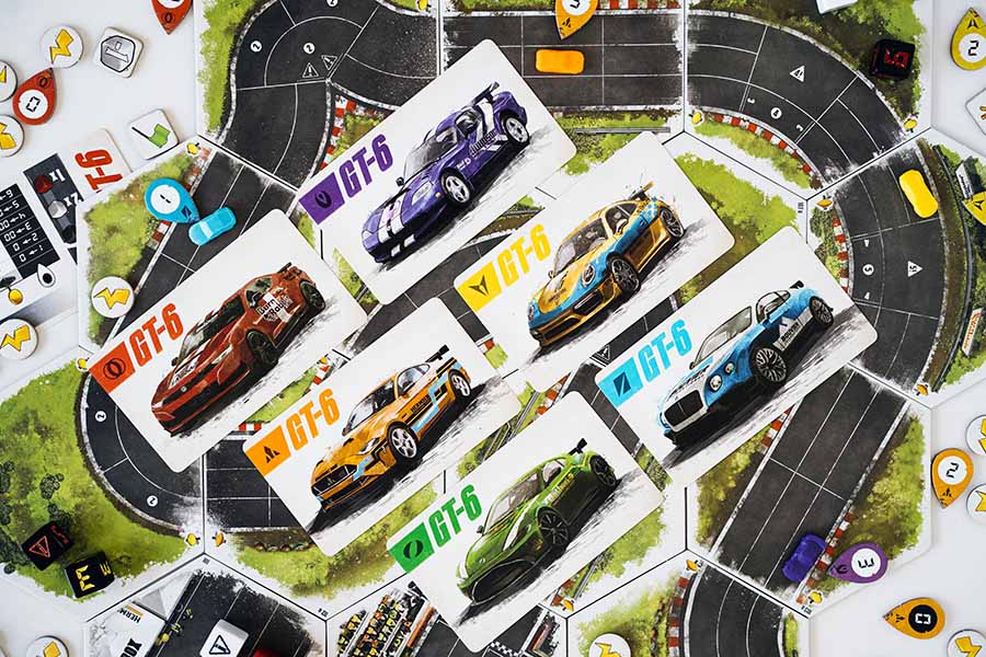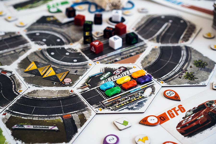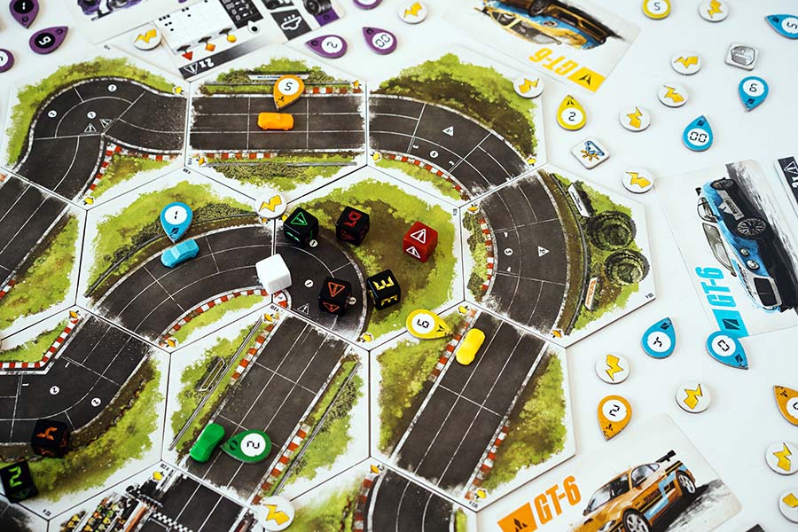Rallyman GT is a deceptively simple racing game with a lot of tactical depth. Speed is everything – at the start of each new round, the turn order changes depending on which player is going the fastest. Only in the case of a tie does the player furthest ahead gain the advantage, so burn that rubber!